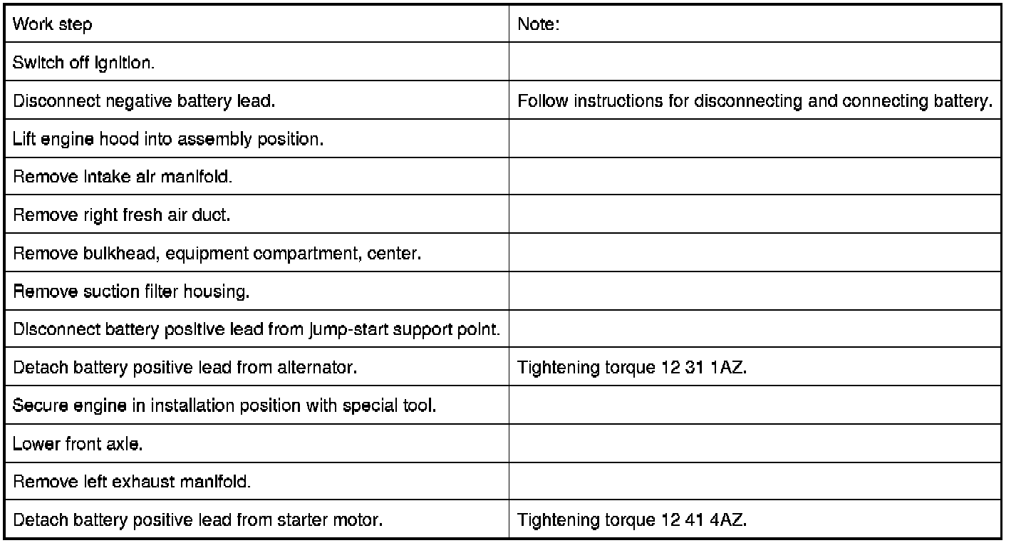 12 42 500 - Removing and installing or replacing battery positive lead (between alternator, starter motor and battery positive support point) (N73)