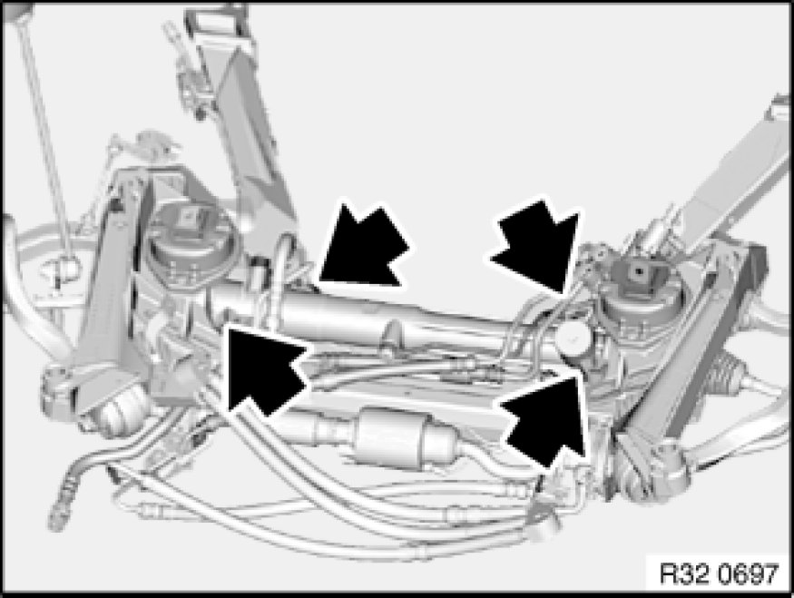 Remove both engine mounts/mounting brackets from front axle carrier.