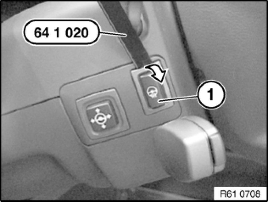 Lever out button for steering wheel heating (1) with special tool 64 1 020 64 1 020 Release Hook .