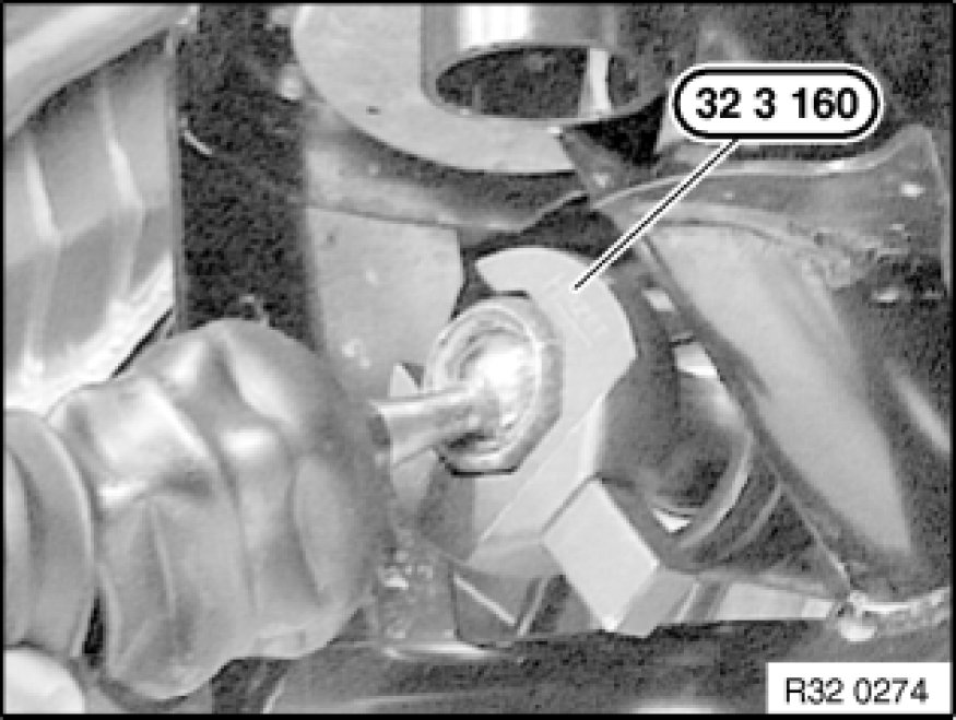 Unscrew tie rod with special tool 32 3 160 32 3 160 T-Handled Socket Wrench WAF 38 from rack of power steering gear.
