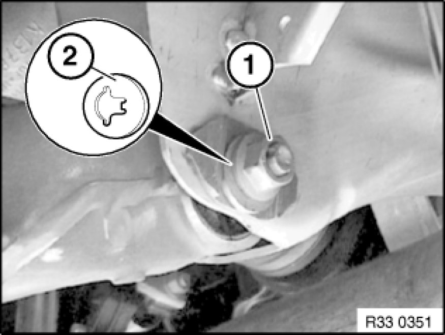 Release nut (1) and remove eccentric washer (2).