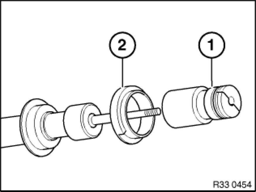 Check auxiliary damper (1) with protective tube and spring pad (2) for damage, replace if necessary.