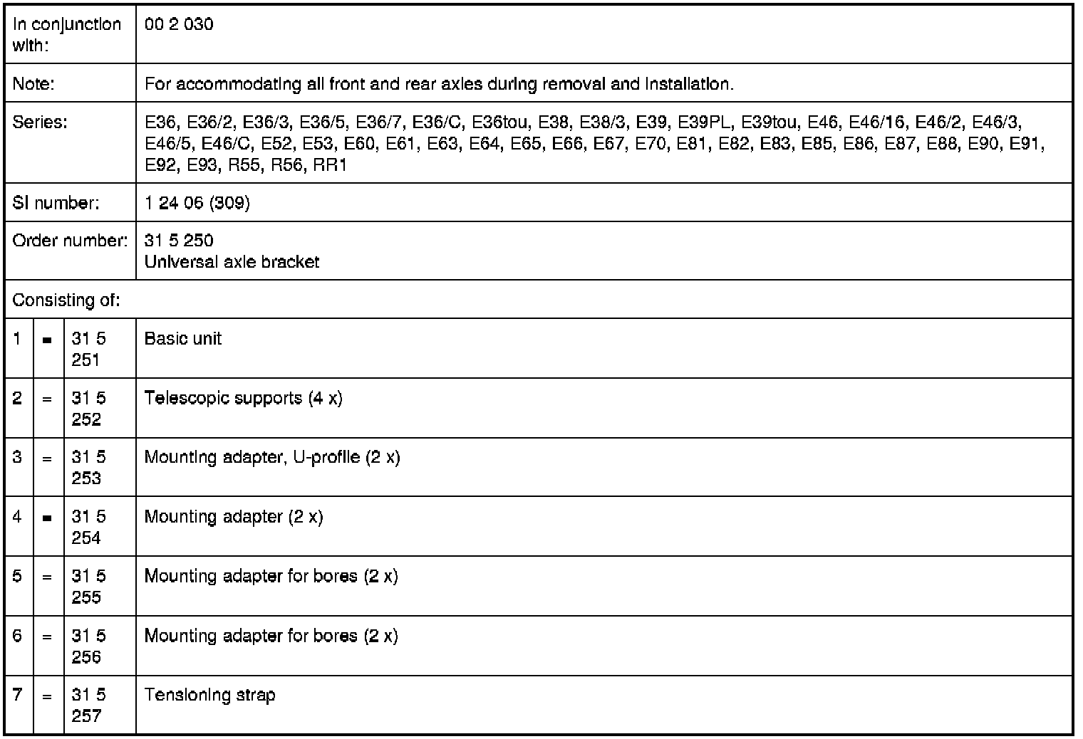 31 5 250 Universal axle bracket