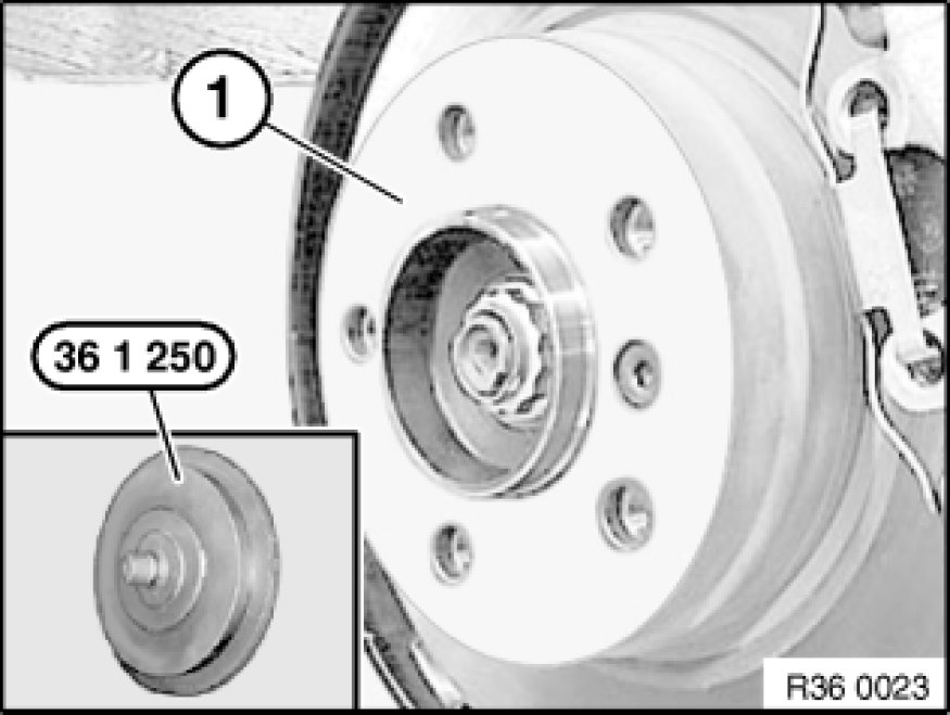 Remove dirt, grease residues and corrosion from contact face (1) with a drill and special tool 36 1 250 36 1 250 Wheel Hub Grinder.