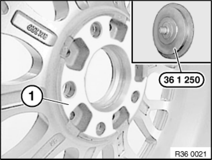 Pull off wheel cover (2) with handle of special tool 36 1 120 36 1 120 Lever (3).