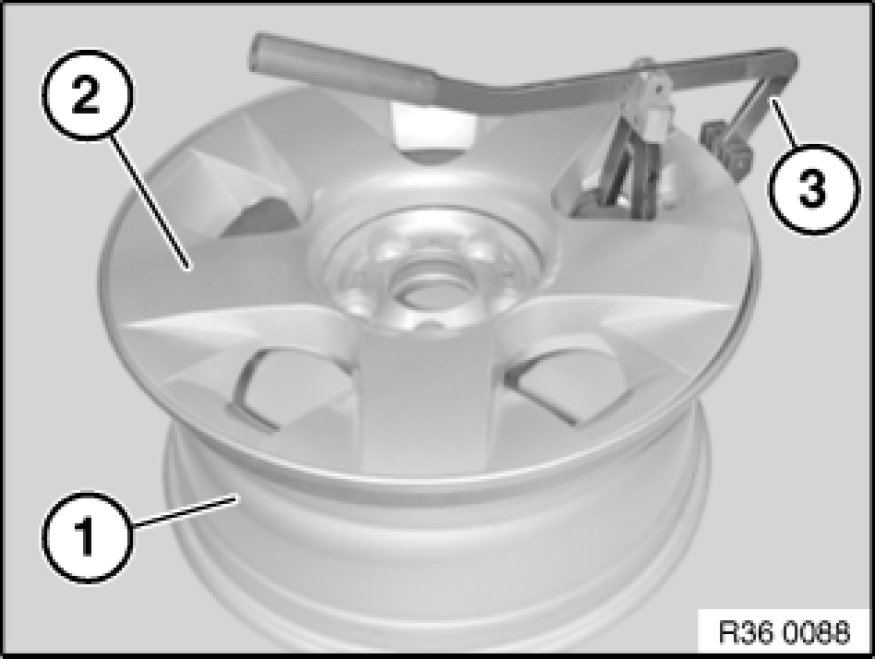 Fit special tool 36 1 120 36 1 120 Lever (3) as shown on rim (1) (near valve).