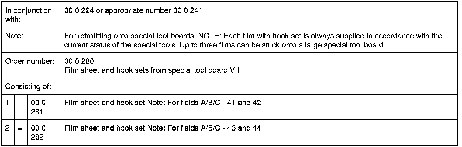 00 0 280 Film Sheet and Hook Sets From Special Tool Board VII