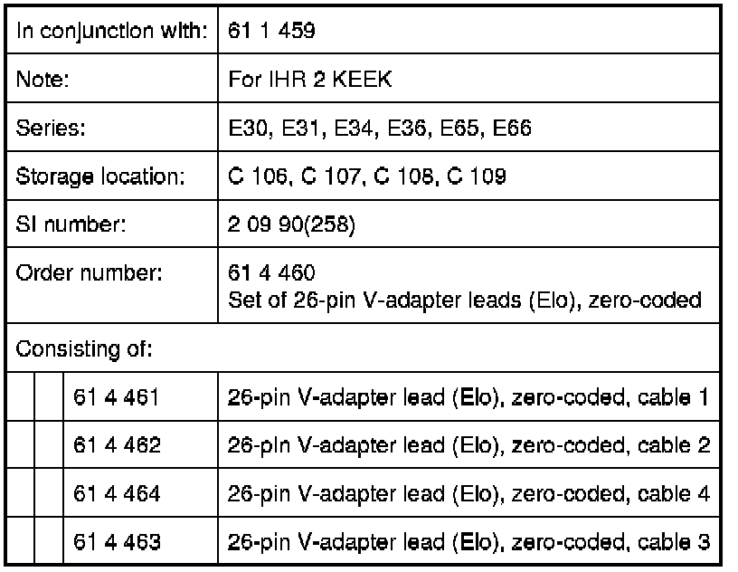 61 4 460 Set of 26-pin V-adapter leads (Elo), zero-coded