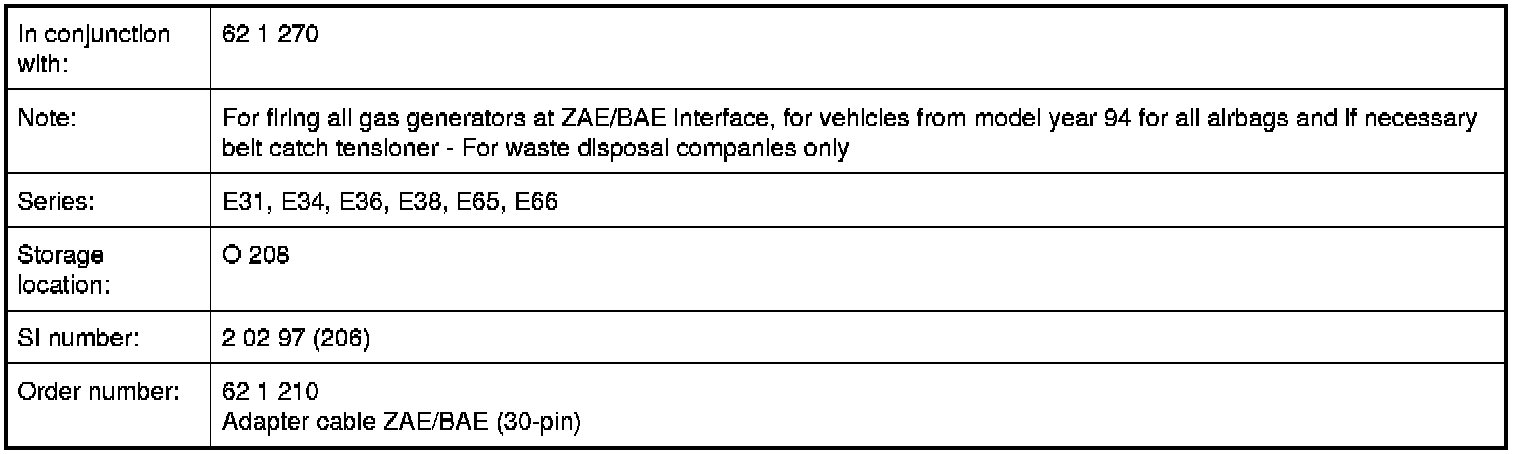 62 1 210 Adapter cable ZAE/BAE (30-pin)