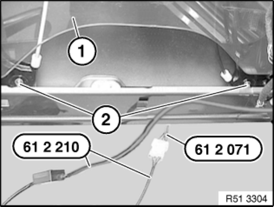 Connect special tool 61 2 210 61 2 210 Activation of Power Windows to plug connection (3) and special tool 61 2 071 61 2 070 Cable Set. Connect special tool 61 2 071 61 2 070 Cable Set to a 12 V power source.