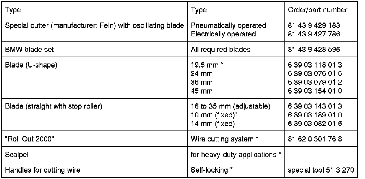 When using cutting wire, pull cutting wire ends through special tool 51 3 270 51 3 270 Pull Handles, bend and tape off with fabric adhesive tape (e.g. Tesa) (risk of injury and damage).