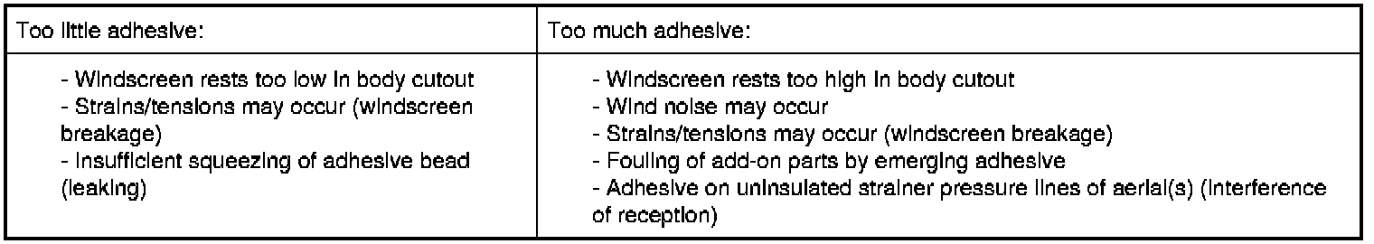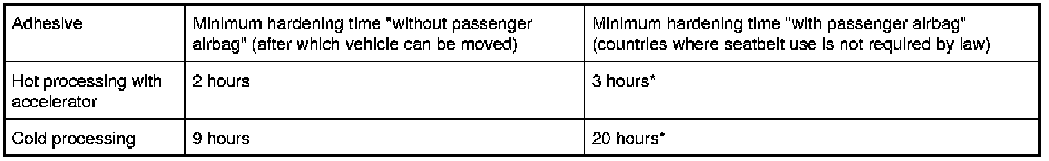 Once the adhesive bead has been applied, the windshield must be installed within 7 minutes (depending on air humidity, temperature).