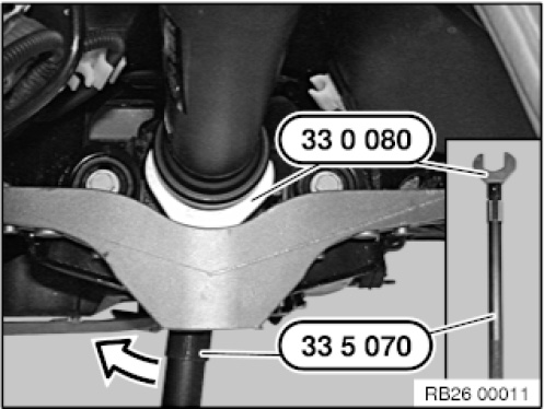 Release insert nut against direction of travel in clockwise direction with special tool 33 0 080 and 33 5 070.
