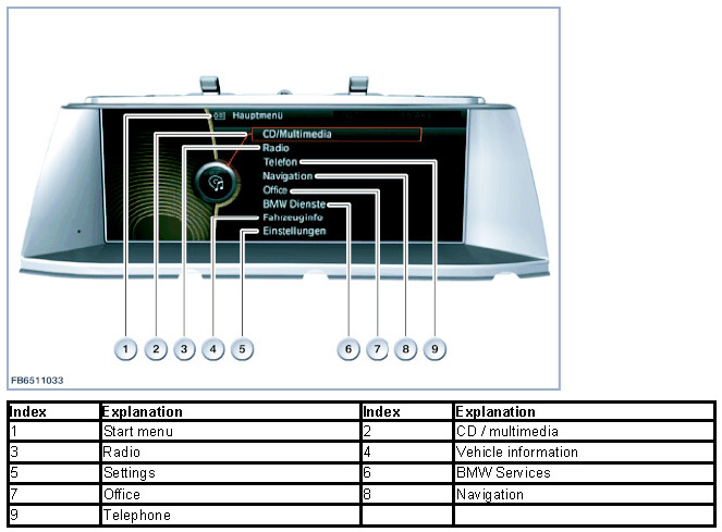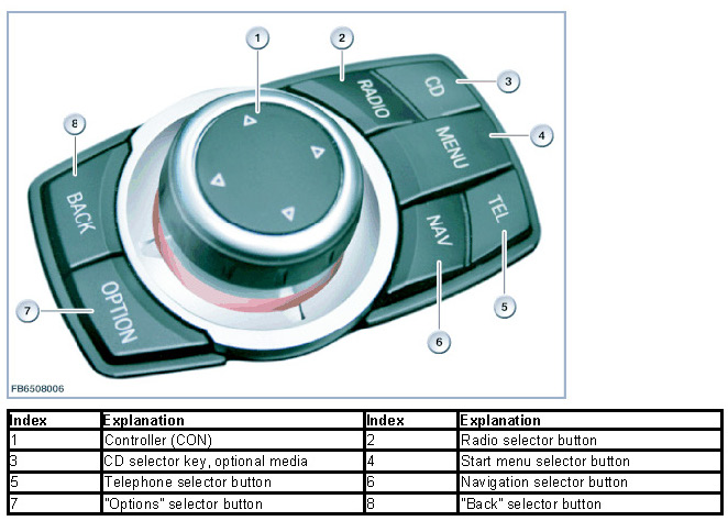 The headunit is the central control unit for the listed applications. For the purposes of picture signal transmission, the headunit is linked to the Central Information Display (CID). The headunit is also connected to the controller (CON). The controller (CON) is the control panel of the central information display (CID).