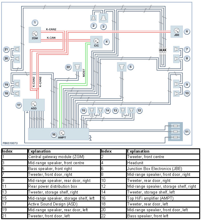 The audio amplifier is connected to "terminal 30" and GND for voltage supply. The audio amplifier is woken up using the MOST bus. The audio amplifier is active under the following preconditions: