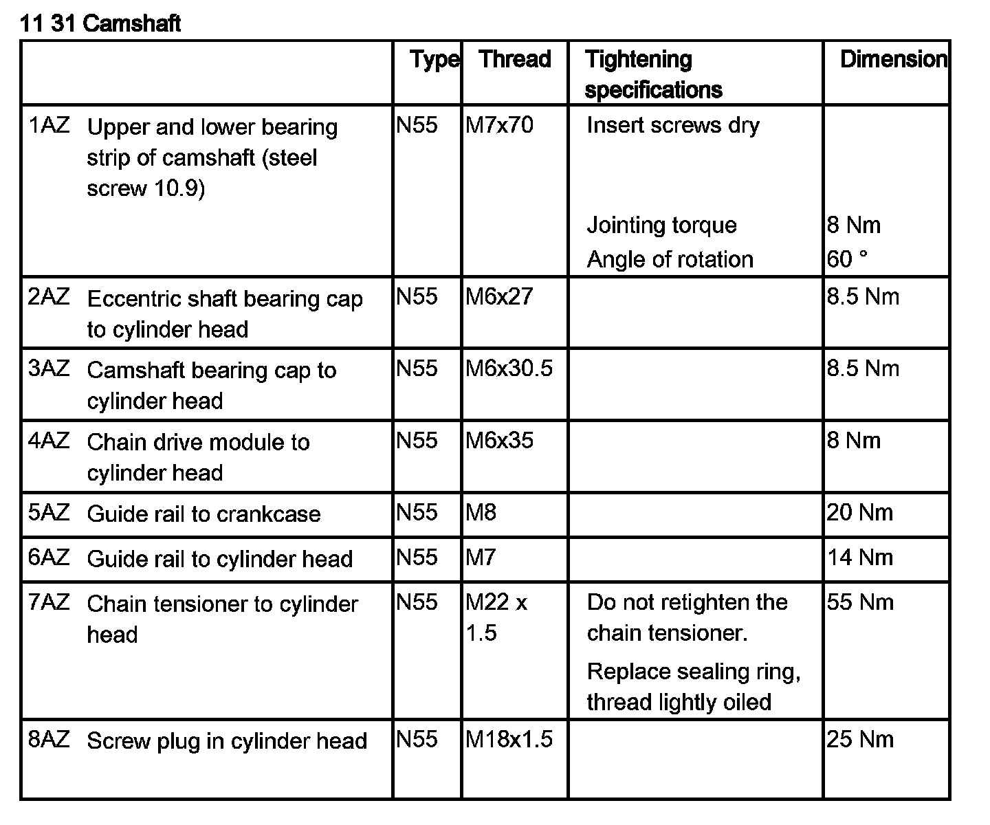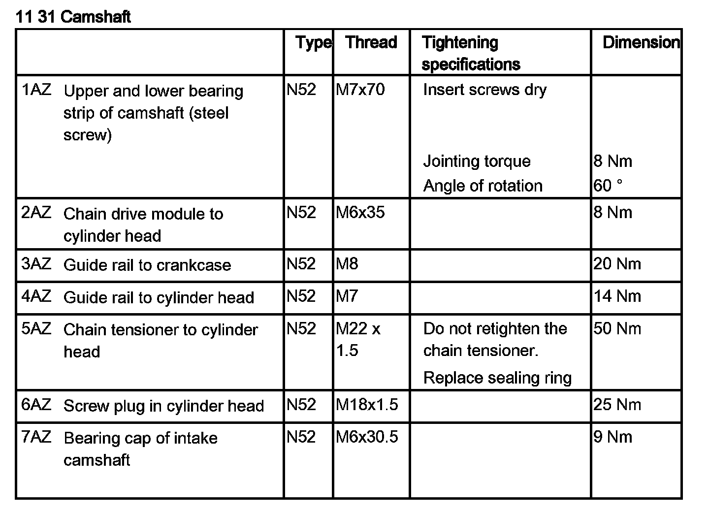 11 31 028 Removing and installing/replacing exhaust camshaft (N52K)