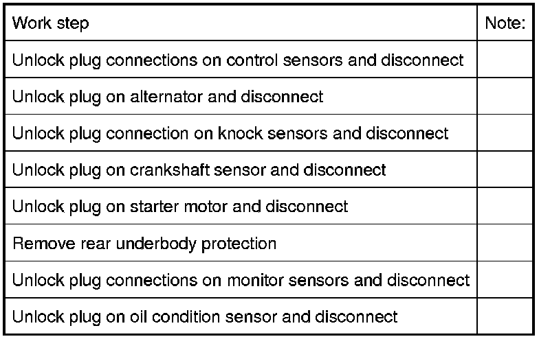 Unlock and disconnect all plug connections of engine wiring harness section in electronics box.