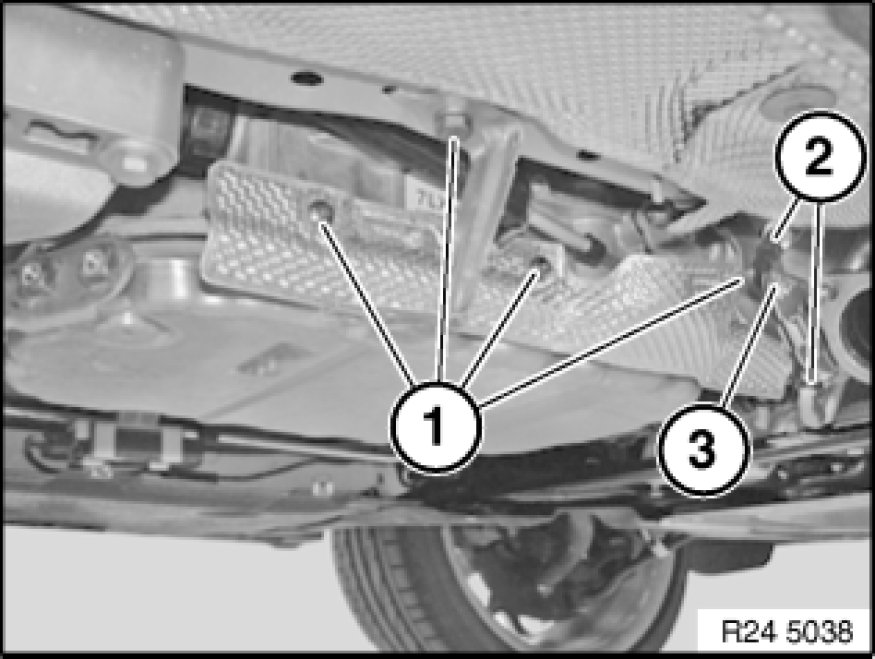 - Remove underbody protection with bracket at front and rear.