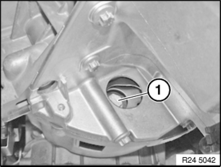 Insert special tool 24 1 370 24 1 370 Locating Fixture into opening of transmission housing and secure with screw (1).