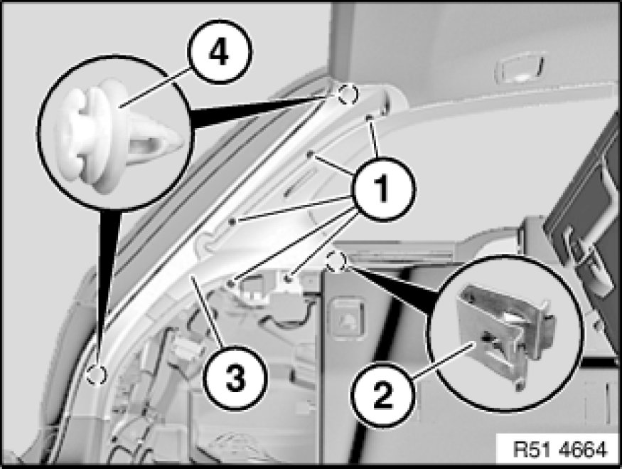 51 43 259 - Removing and installing/replacing trim panel for rear left or right roof pillar (D-pillar)