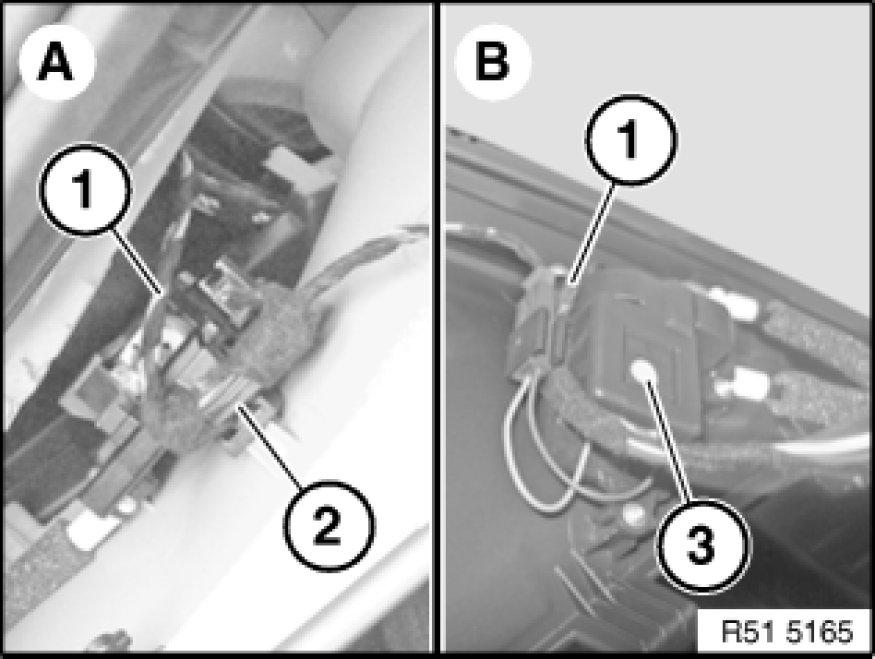 When converting from build date A to build date B, cable holder (2) must be removed and is omitted.