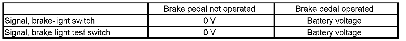 The two signals of the brake-light switch behave with respect to each other in accordance with the following table: