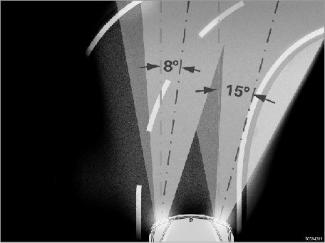Reason: For a constant cornering radius, the required steering angle increases disproportionately with speed. In addition, the required steering angle also depends on the coefficient of friction of the roadway. Yaw rate is directly proportional to speed. For this reason, the yaw rate is always the most suitable measure for controlling the adaptive headlights at high speeds.