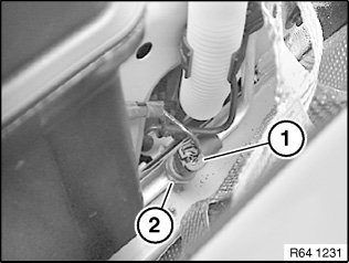 Disconnect plug connection (1) and release safety pressure switch (2).
