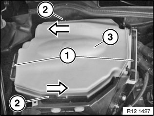Unlock fasteners (1) from below and slide upwards approx. 10 mm.