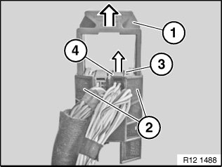 Unlock and disconnect all plug connections of engine wiring harness section in electronics box.
