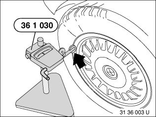 Check radial runout of wheel rim with special tool 36 1 030(measuring device).