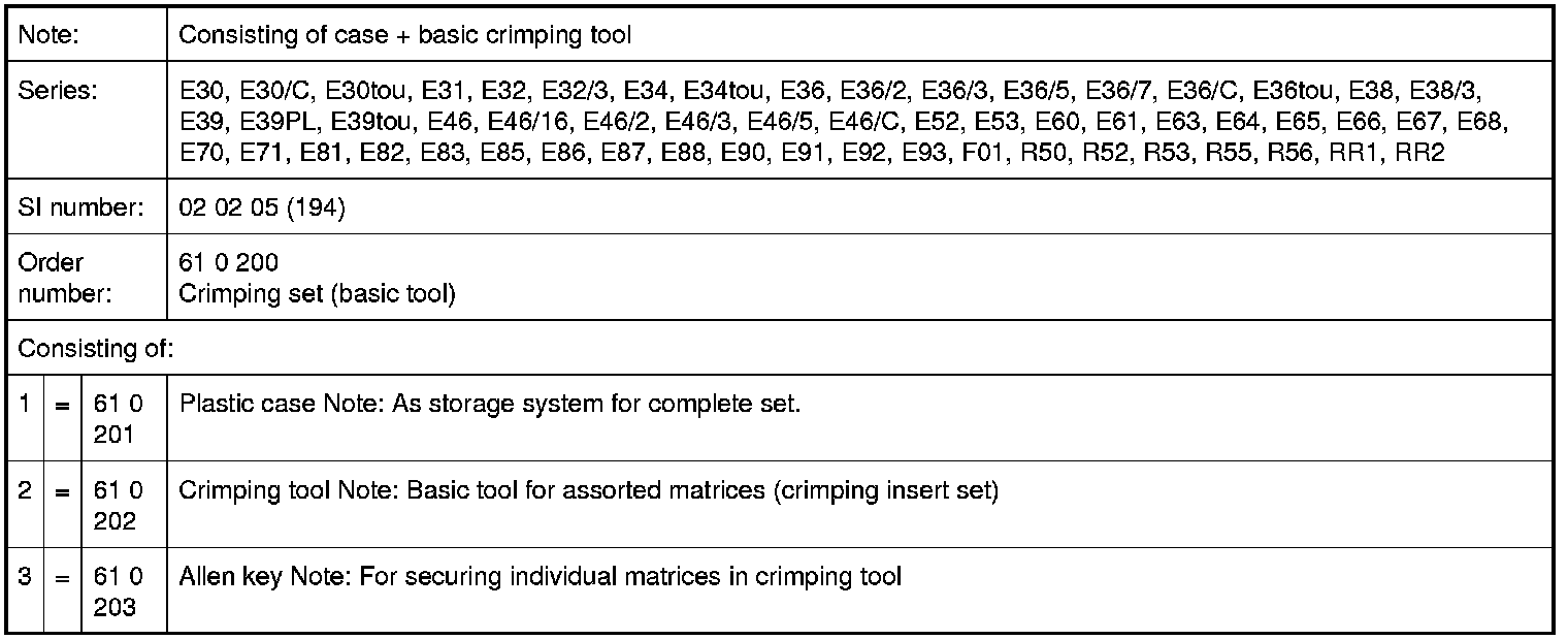 61 0 200 Crimping set (basic tool)