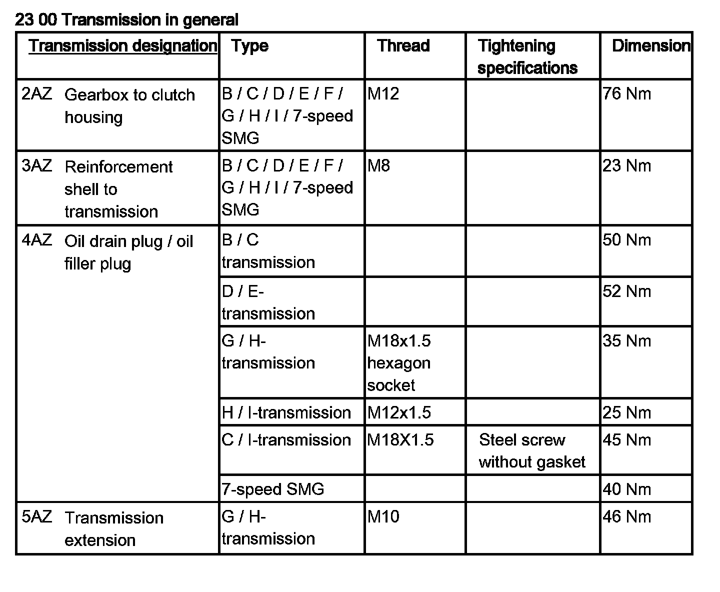 Tightening torque 23 00 4AZ.