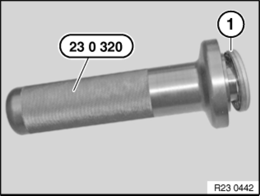 Push radial seal (1) onto special tool 23 0 320 23 0 320 Drift.