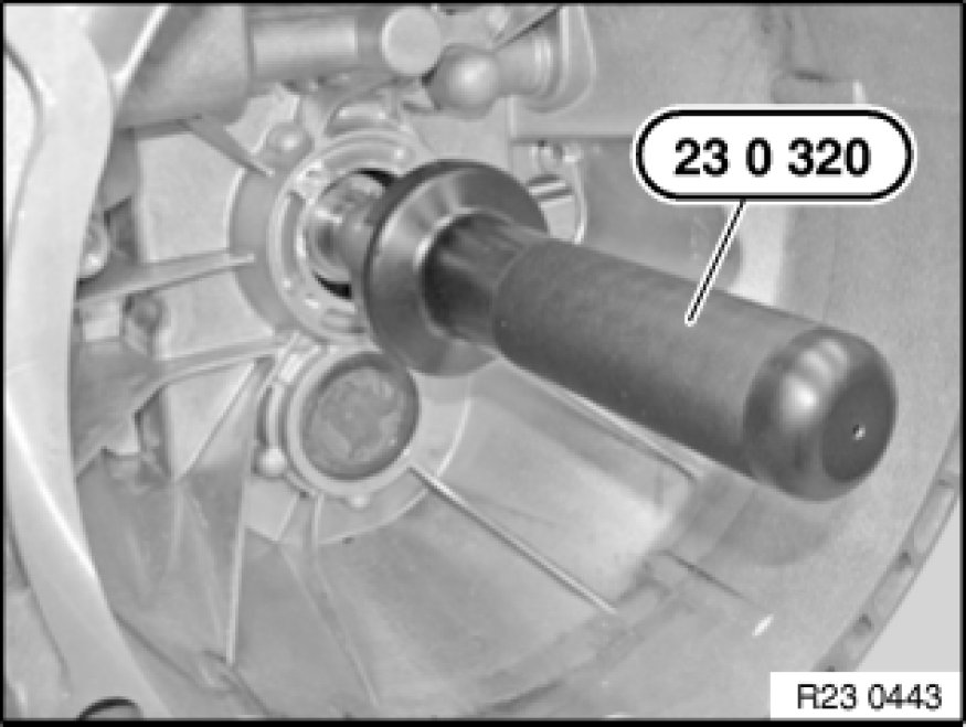 Slide special tool 23 0 320 23 0 320 Drift onto input shaft.