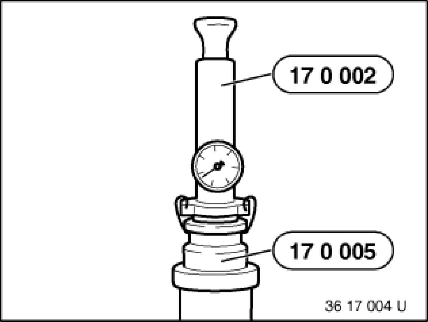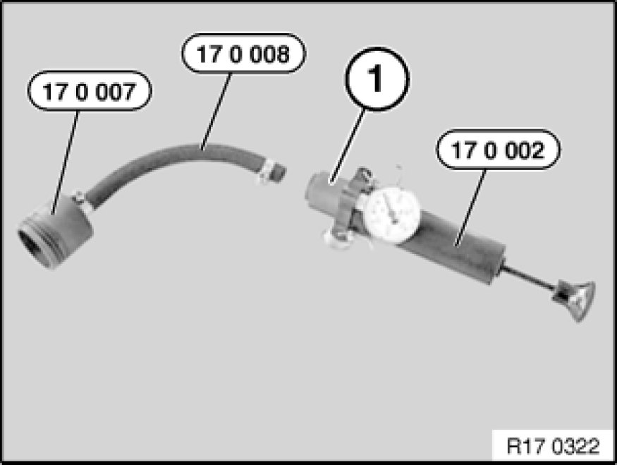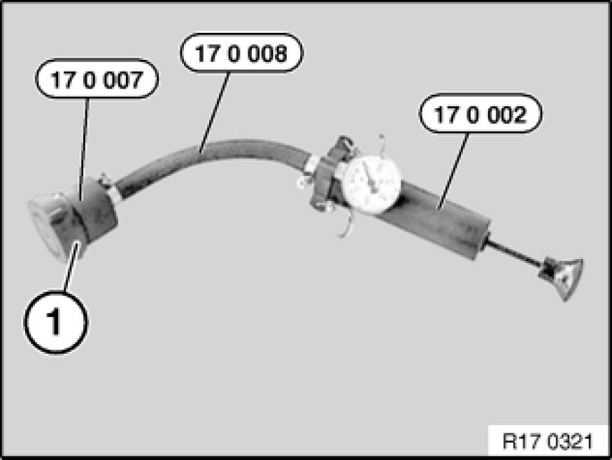 Screw cap (1) onto special tool 17 0 007 17 0 000 Tester.
