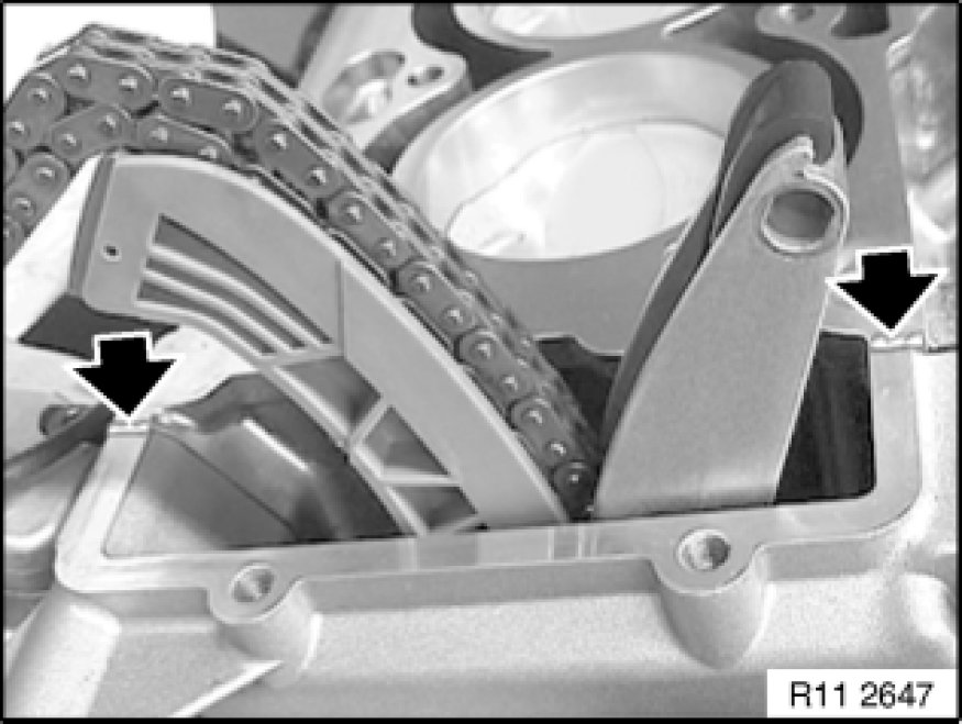 Slacken off chain tensioning piston (1) by approx. one turn.