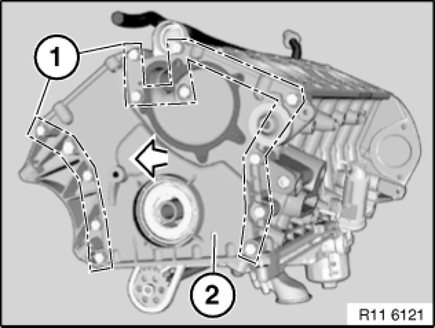 11 14 110 - Removing and installing lower timing case cover (N73)