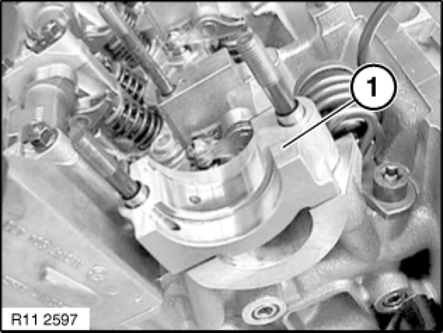 Fit preassembled bearing bracket (1) carefully on cylinder head inlet valves.