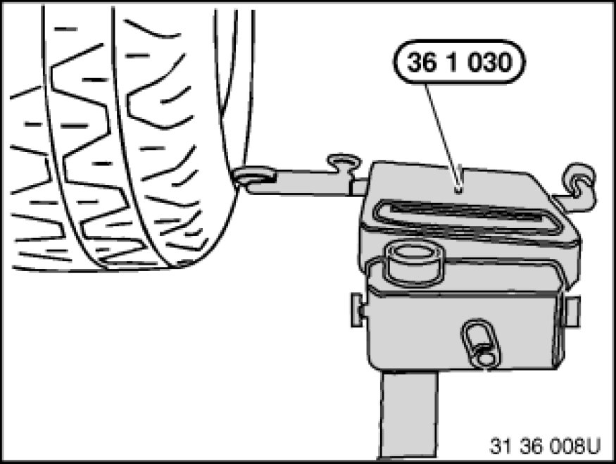 Position special tool 36 1 030 36 1 030 Tester on tire side wall.