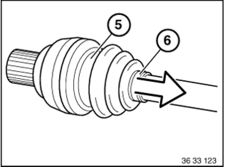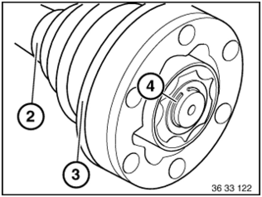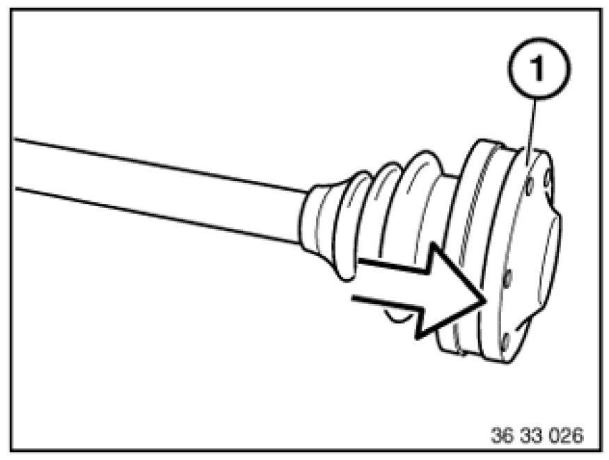 Coat sealing surface of cap (3) with sealing compound (refer to BMW Parts Service) and press with a thrust ring onto constant-velocity joint.