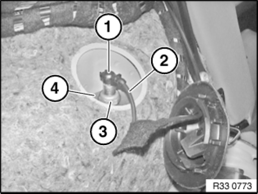 - Remove support pot (1) and auxiliary damper (2) with protective tube (3) from rear shock absorber (4)