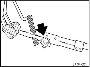 Press clutch pedal down to floor and secure with pedal support.
