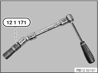 First, hand-tighten the spark plugs with special tool 12 1 171 and with an extension with a joint into the engine.
