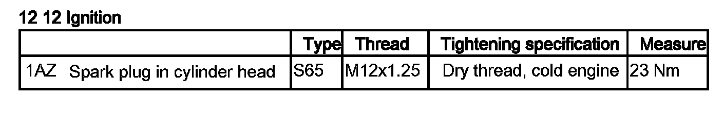 Tightening torque 12 12 2AZ.