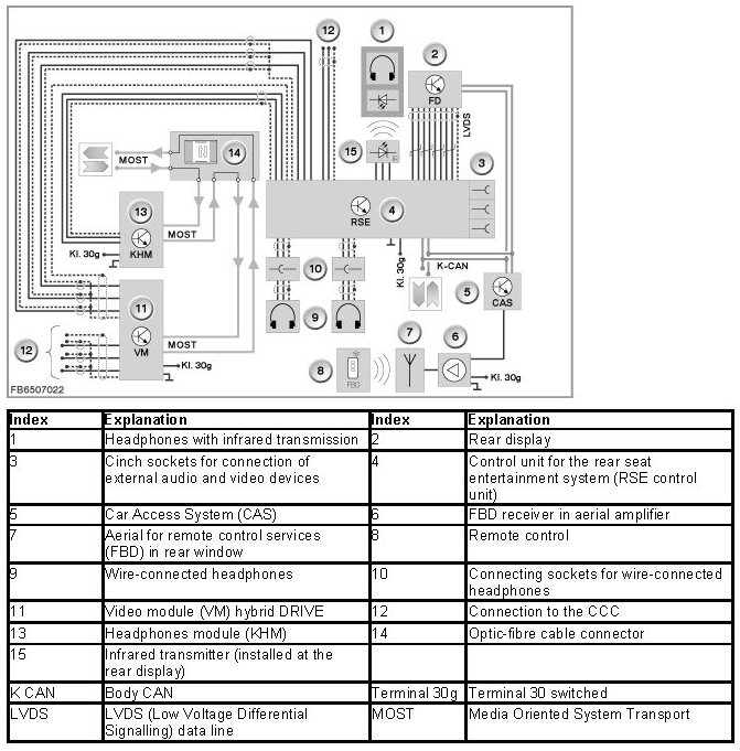 The control unit for the rear seat entertainment system (= RSE control unit) is activated via the K-CAN.