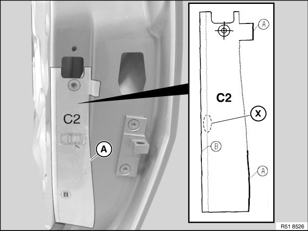 - Positioning aid "C2" rear door, left (door brake, bottom)