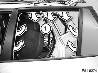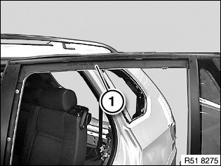 If necessary, retract door window glass approx. 50 mm into rubber guide (1).