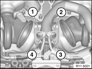 Where necessary, to release the coolant feed lines (3 and 4), do not place pliers on the pipes.