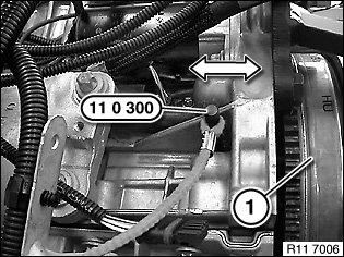 If the flywheel is secured in the correct bore with special tool 11 0 300, the engine can no longer be moved at the central bolt.
